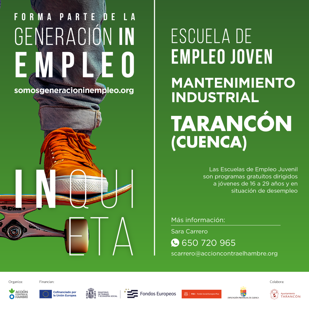 La II Escuela de Empleo de Acción contra el Hambre en Tarancón, dirigida a jóvenes de toda la provincia, ofrecerá formación técnica especializada en mantenimiento industrial, con contenidos prácticos y certificados clave en operador de carretilla y transpaleta retráctil, altamente demandados por el tejido empresarial de la comarca. Asimismo, el programa incorpora una parte fundamental de orientación laboral y desarrollo personal, que incluye búsqueda activa de empleo, entrenamiento de competencias transversales, mejora de habilidades sociales y profesionales, y promoción de hábitos de vida saludable.
